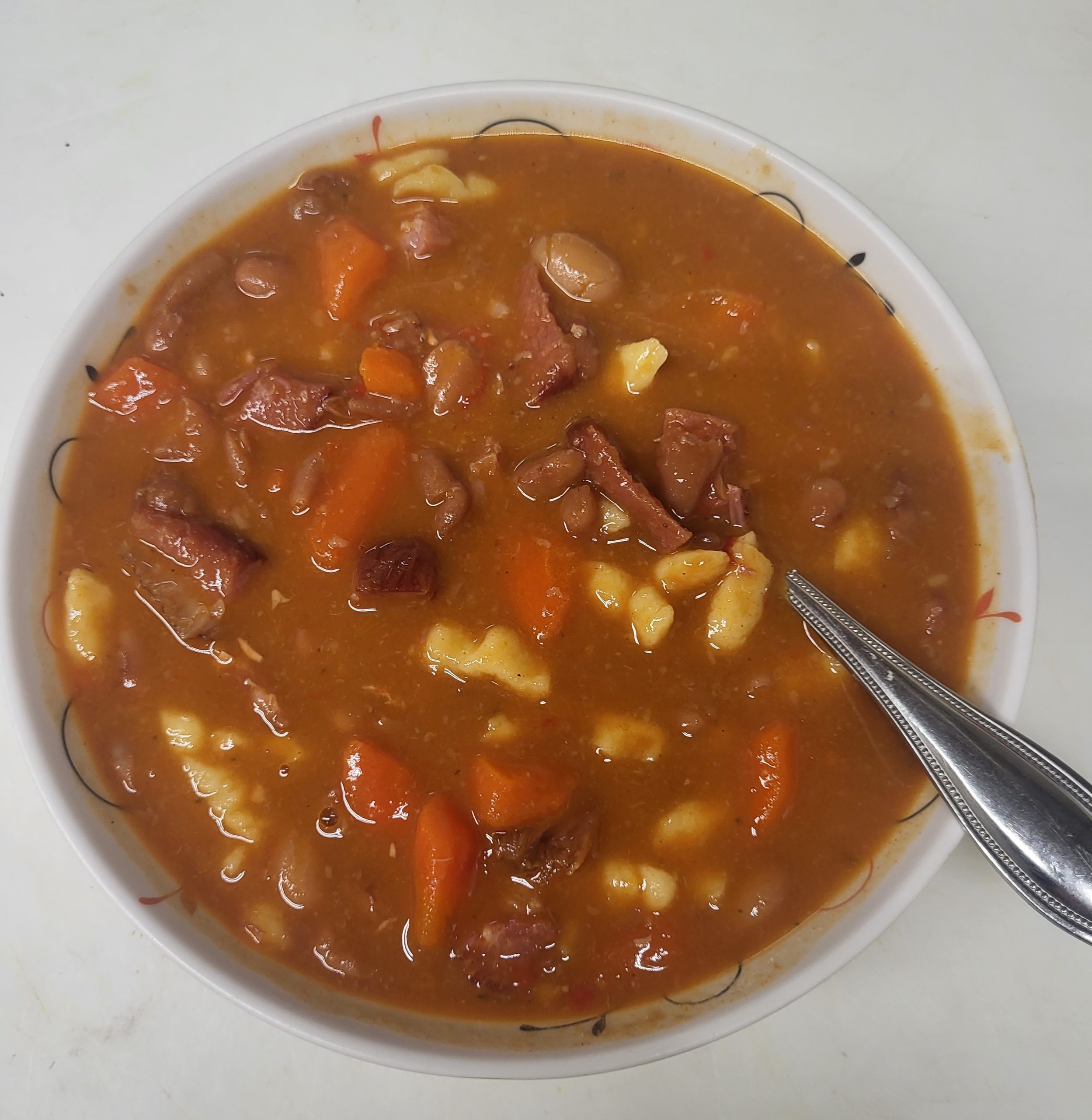 Bableves is a traditional dish in Hungarian cuisine. It’s a very rich bean soup with lots of vegetables, smoked meat and beans.